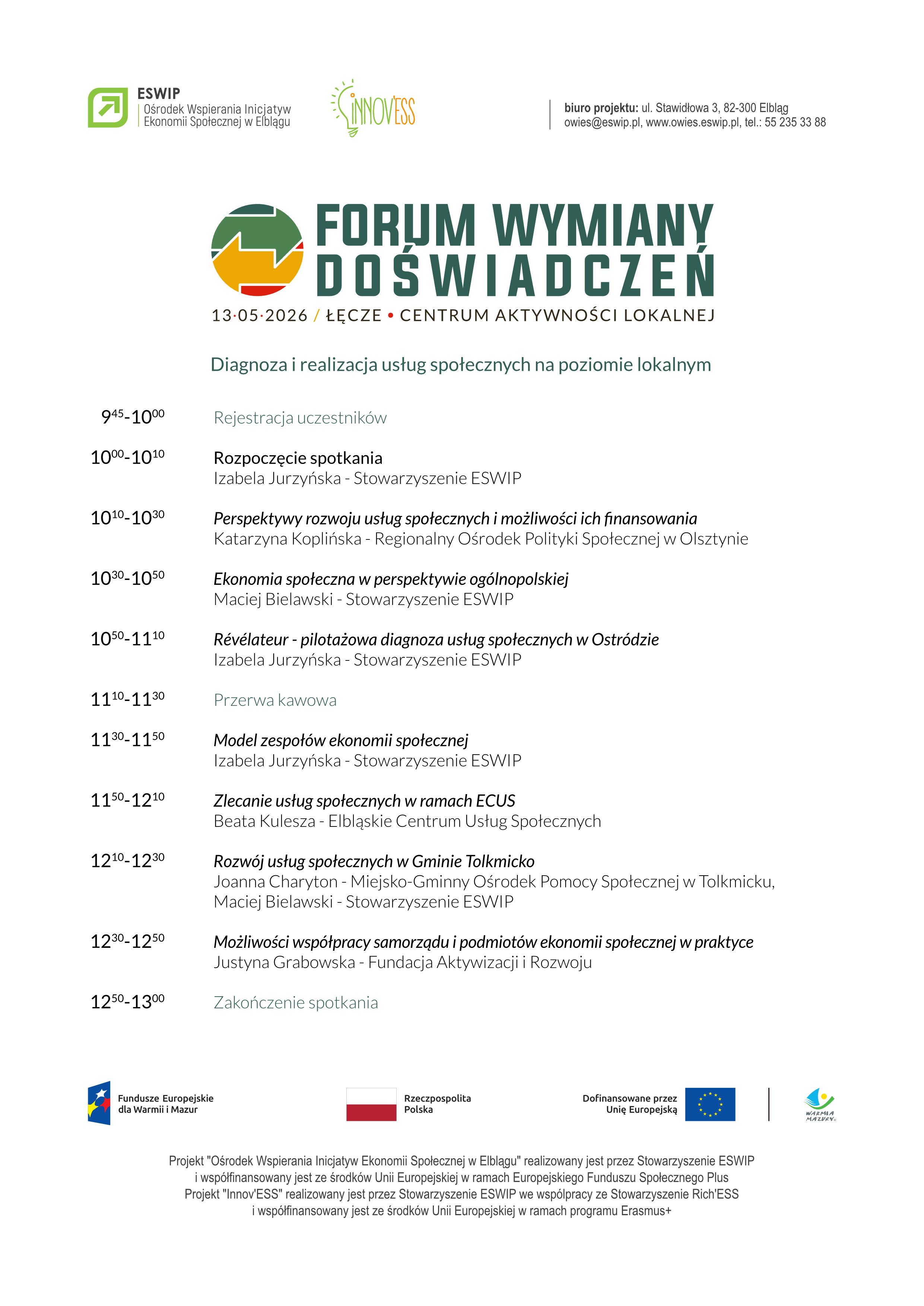 Wszelkich informacji na temat Forum udziela Ośrodek Wspierania Inicjatyw Ekonomii Społecznej w Elblągu: